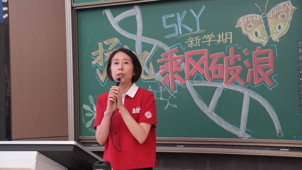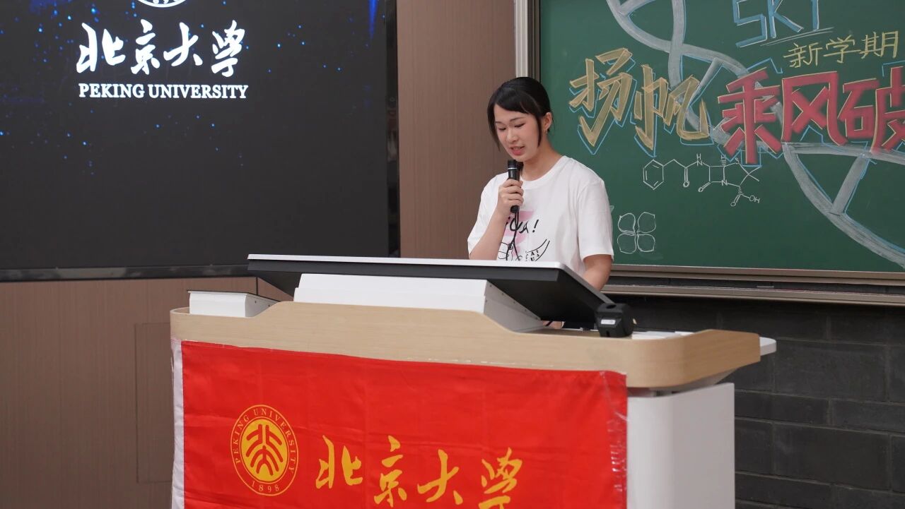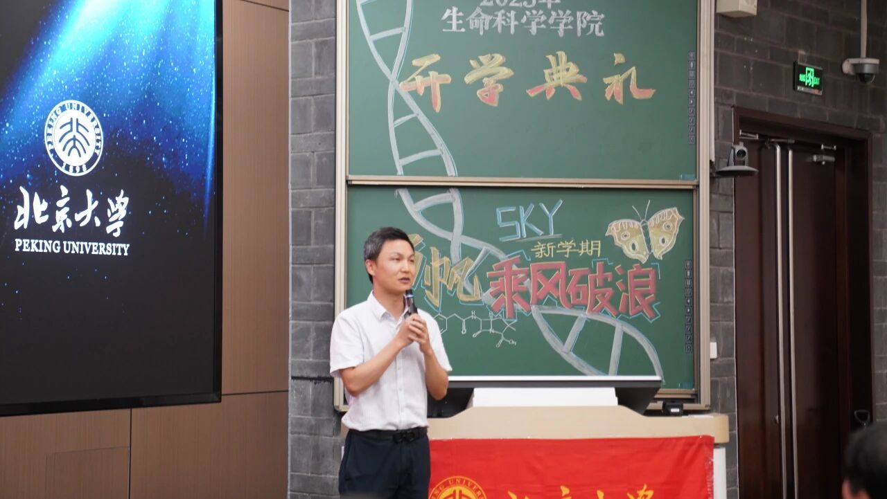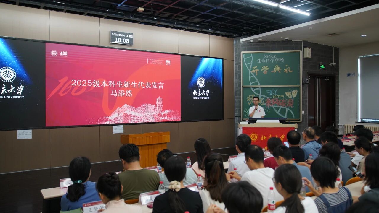 研究生新生代表樊宜萱分享了她对生命科学的热爱与向往。她表示,正是对生命奥秘的好奇让大家相聚,并呼吁同学们培养坚韧的品格,始终保持对生活的热爱,努力成为更完整、更丰盈的人。最后,她立足于北大生物学科百年历史,号召大家在探索科学之路中并肩前行,共同书写北大生科新的百年华章。