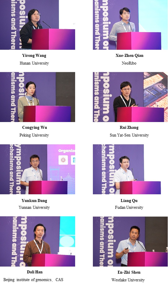 会议期间,围绕RNA研究的多个核心方向展开了全面且深入的交流。在“RNA结合蛋白与剪接调控”分议题中,专家们深入剖析了RNA结合蛋白调控机制、U12型剪接体的催化机制、癌症中可变剪接调控网络等,揭示了RNA剪接调控领域的多项关键机制;在“转录与转录后调控”议题,学者们探讨了调控性RNA在转录过程中的功能、m6A表观转录组在癌症发生中的作用、异构体调控对代谢适应的影响,为完善基因表达调控网络提供了全新视角;在“RNA修饰”议题下,专家们研究了环境变化诱导的RNA骨架修饰、调控m6A加工特异性的机制、m6A修饰的功能、RNA甲基化在植物中的新作用等,进一步深化了对RNA修饰生物学功能的理解;在“调控性RNA”分议题中,研究人员探讨了蛋白质的RNA化修饰的细胞功能以及在临床治疗中的潜在应用、母源piRNA对物种形成界限的影响、tRNA片段激活RtcR的机制,揭开了基因调控的新维度;最后,“疾病与治疗策略”议题探讨了核酸适配体组学在推动多维度分子诊疗的突破发展、调控RNA外显子跳跃的新策略、环形RNA介导的细胞疗法、赋能RNA治疗的人工智能研究等,为疾病诊断与治疗开拓了新视角。