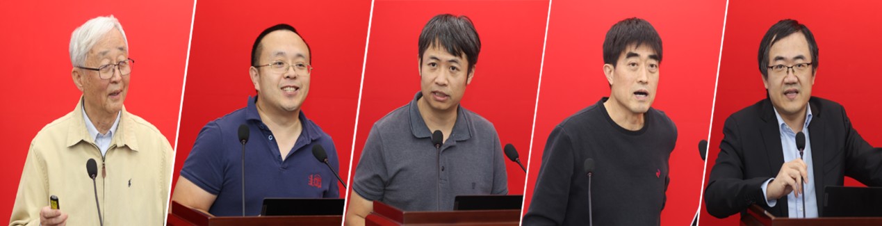 由左至右:许崇任、白洋、苗成林、魏文胜、杨竞分别介绍华东产研院进展及科研成果