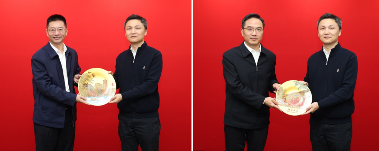 由左至右:石长翼代表学院,向南通市和启东市分别赠送了纪念礼物