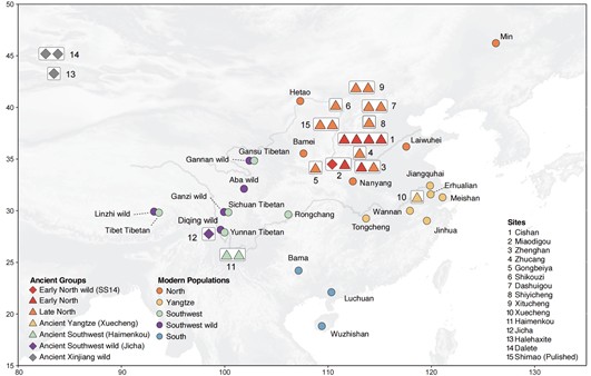 家猪的驯化是人类农业社会建立和发展的重要里程碑。在新石器时代早期,家猪在亚欧大陆两端被独立驯化。作为家猪的主要起源地之一,中国拥有近百个本土猪品种,是全球家猪遗传多样性的重要组成部分。然而长期以来,中国家猪的驯化与传播历史、与人群的互动关系,以及关键表型的起源和扩散过程仍不清晰。